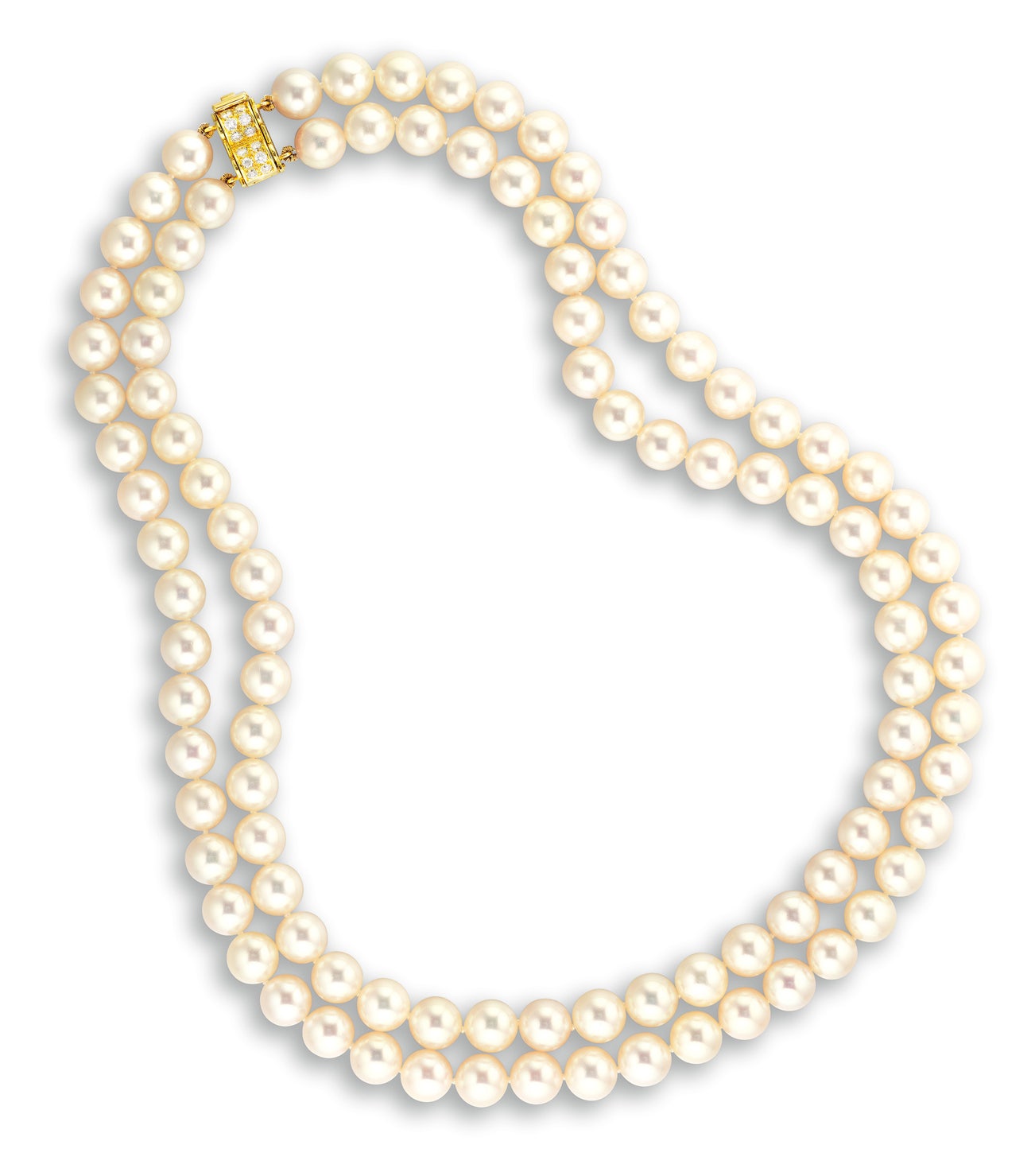 A Cultured Pearl and Diamond Double-strand Necklace, Cartier