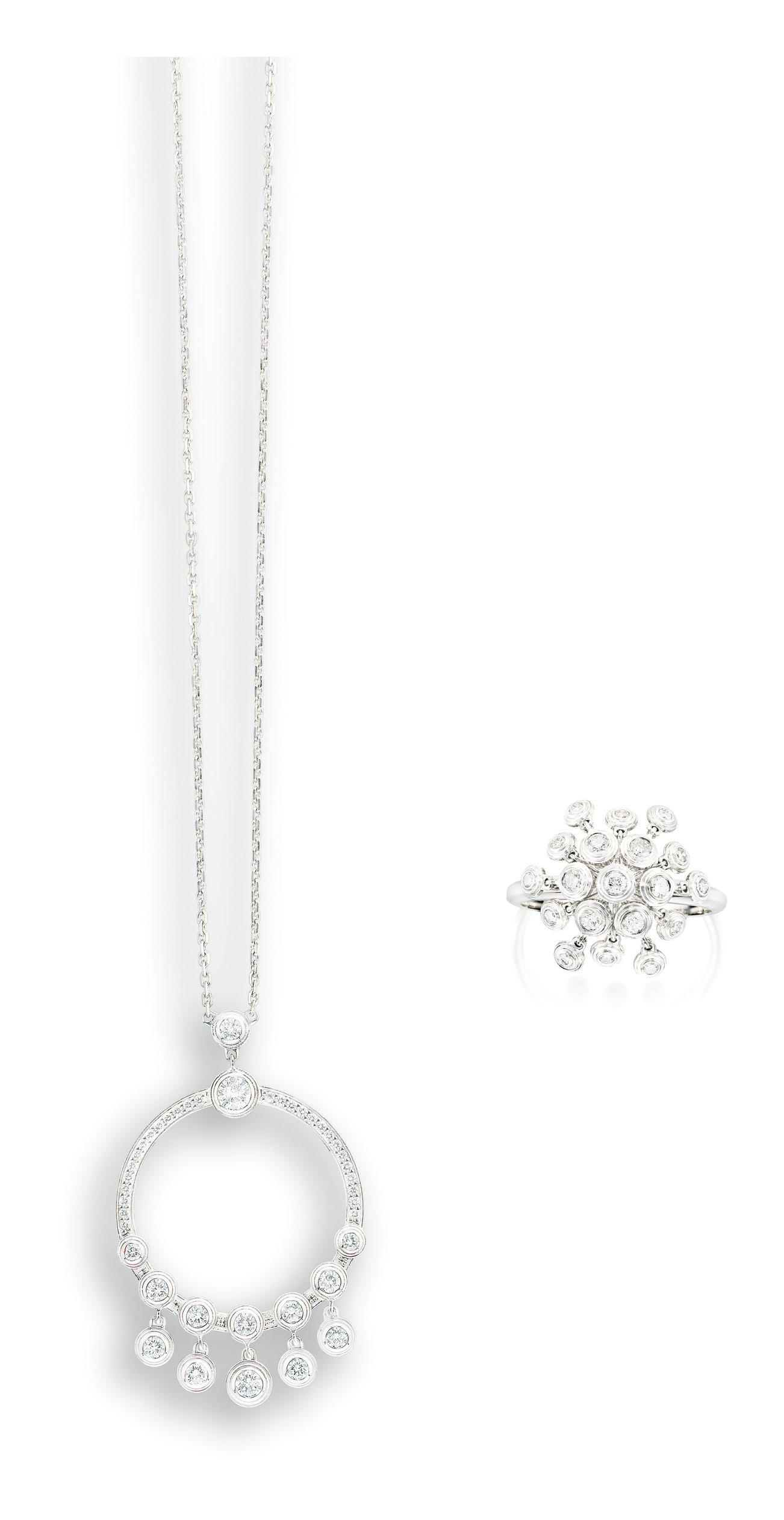 A Diamond Pendant Necklace, and a Matching Ring, Cartier