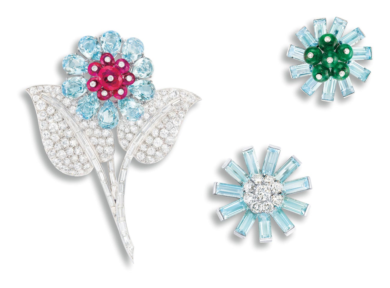 A Gem-set and Diamond 'Flower' Brooch, Cartier Paris, 1950s, with Interchangeable Flowerheads