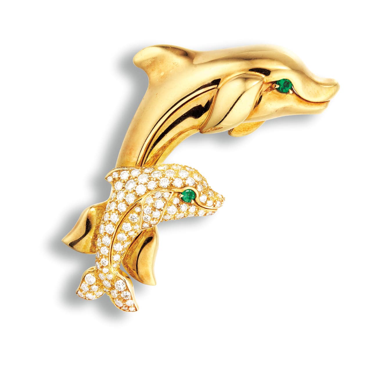 A Karat Gold, Diamond and Emerald 'Dolphin' Brooch, Cartier