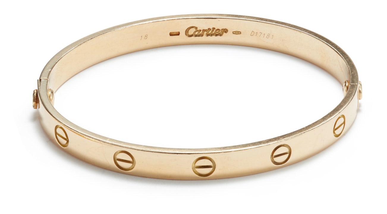 Cartier did not only touch on functionality. Inspired by a commissioned painting by George Barbier featuring a black panther at the feet of an elegantly bejeweled woman, Cartier began incorporating wild animals in his designs—most notably, Cartier Panthère rings, bangle bracelets and watches. Yet it wasn't until the late 1960s that the house of Cartier debuted their iconic yellow and rose gold LOVE collection, which includes the famous bracelet that only a special screwdriver can open.