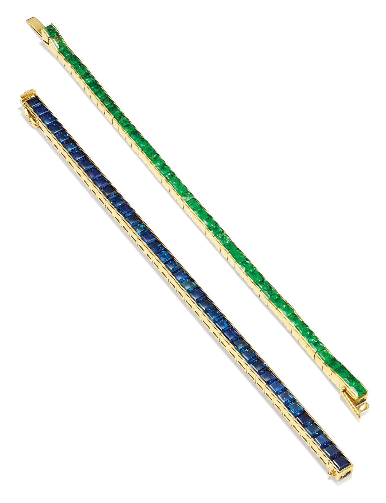 A Set of Emerald, Sapphire and Gold Bracelets