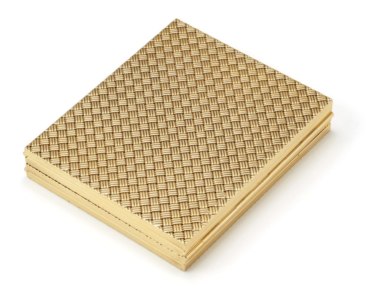 14 karat yellow gold, measuring approximately 2.65 x 2.25 inches, with signed case