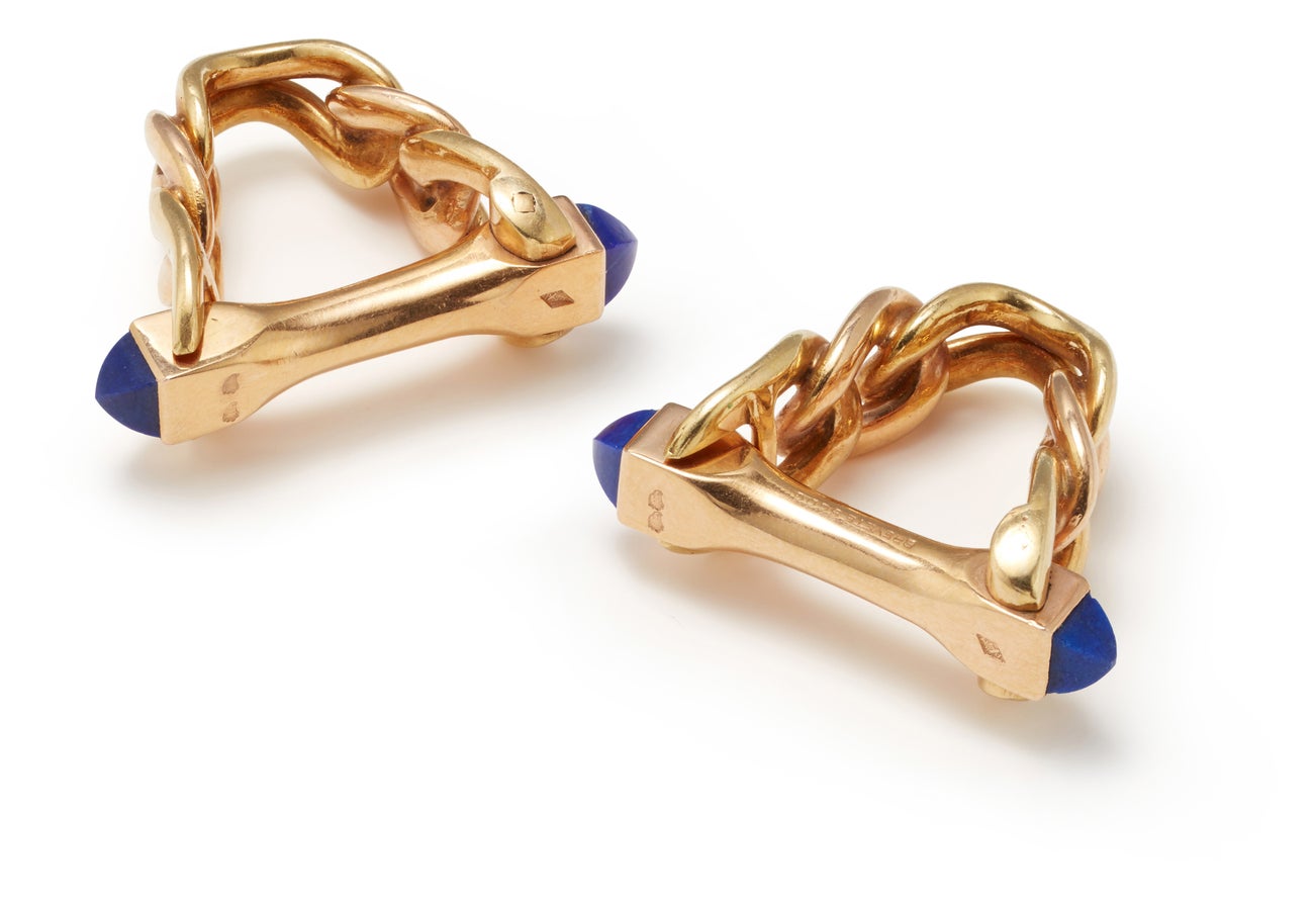 A Pair of Lapis Lazuli and Gold Cufflinks
