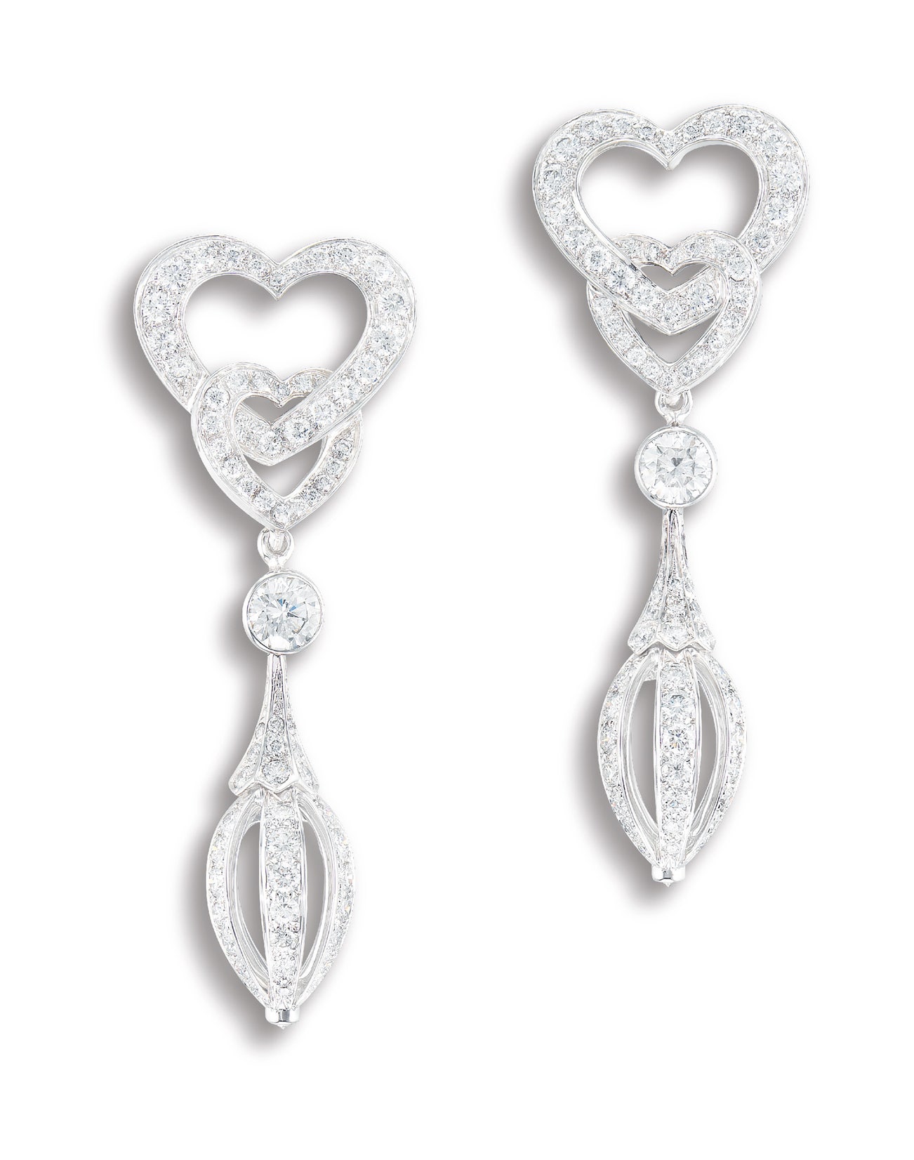 A Pair of Diamond Pendent Ear Clips, Cartier