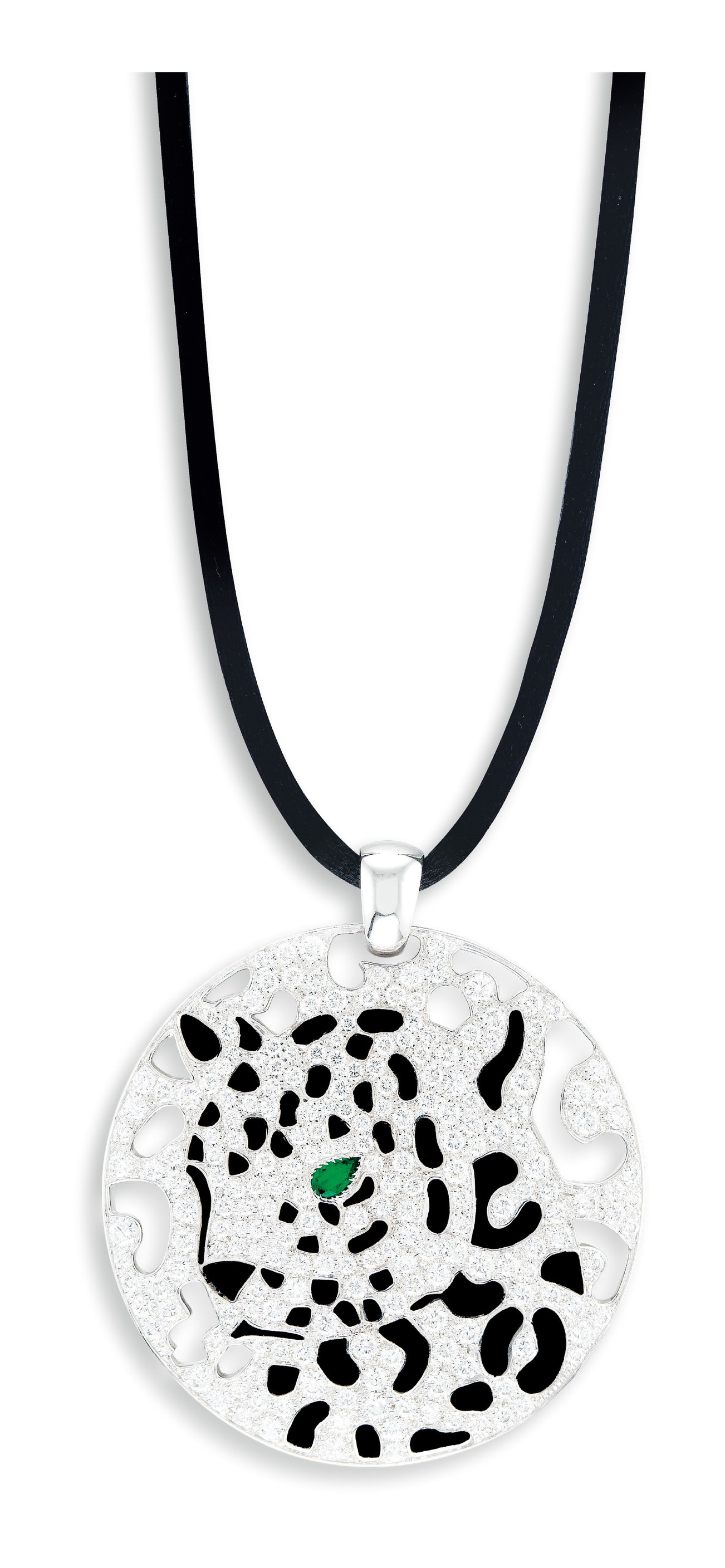 A Diamond, Lacquer and Emerald 'Panthère' Pendant, Cartier