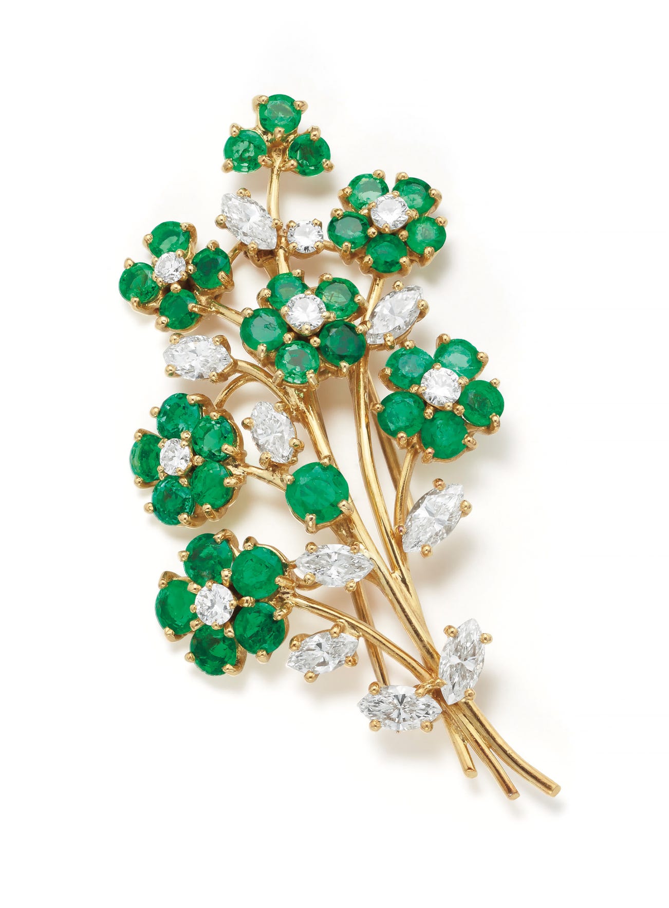 A Diamond, Emerald and Gold Brooch