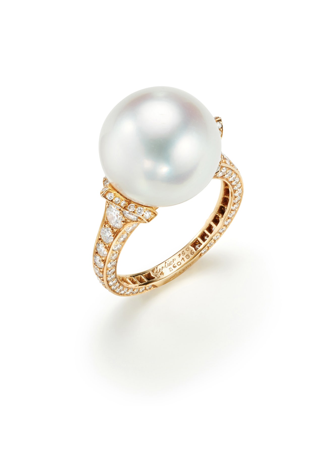 A South Sea Cultured Pearl, Diamond and Gold Ring