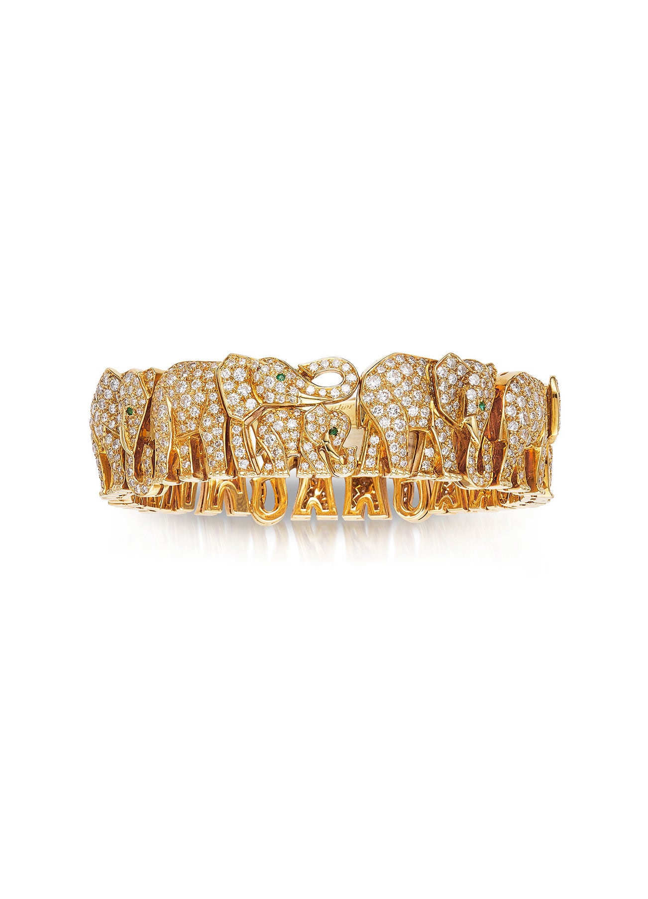 A Gold, Diamond and Emerald 'Elephant' Bracelet
