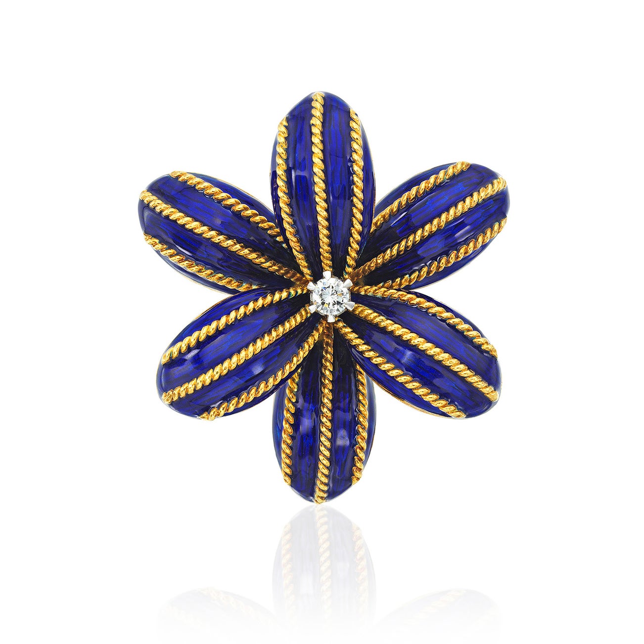 A Diamond, Enamel, and Bi-Colored Gold Brooch
