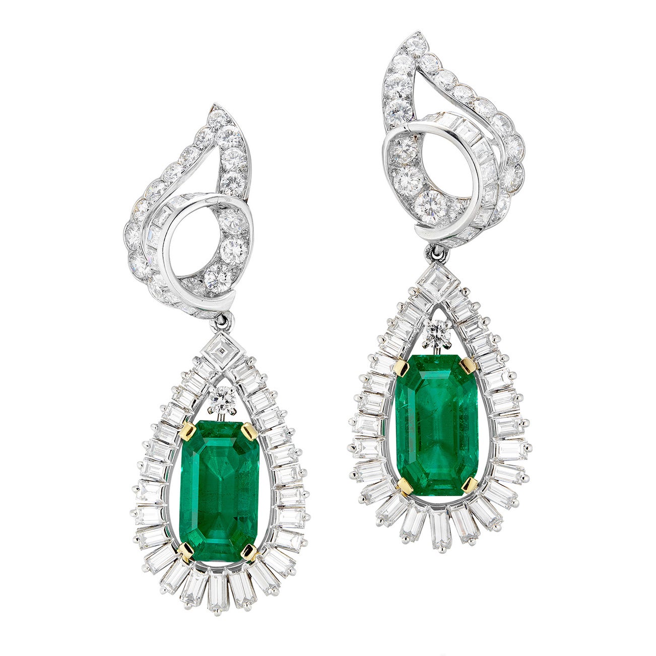 An Exceptional Pair of Emerald and Diamond Earrings, Circa 1960s