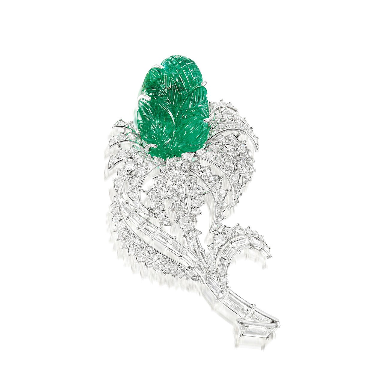 A Carved Emerald and Diamond Brooch, Circa 1966