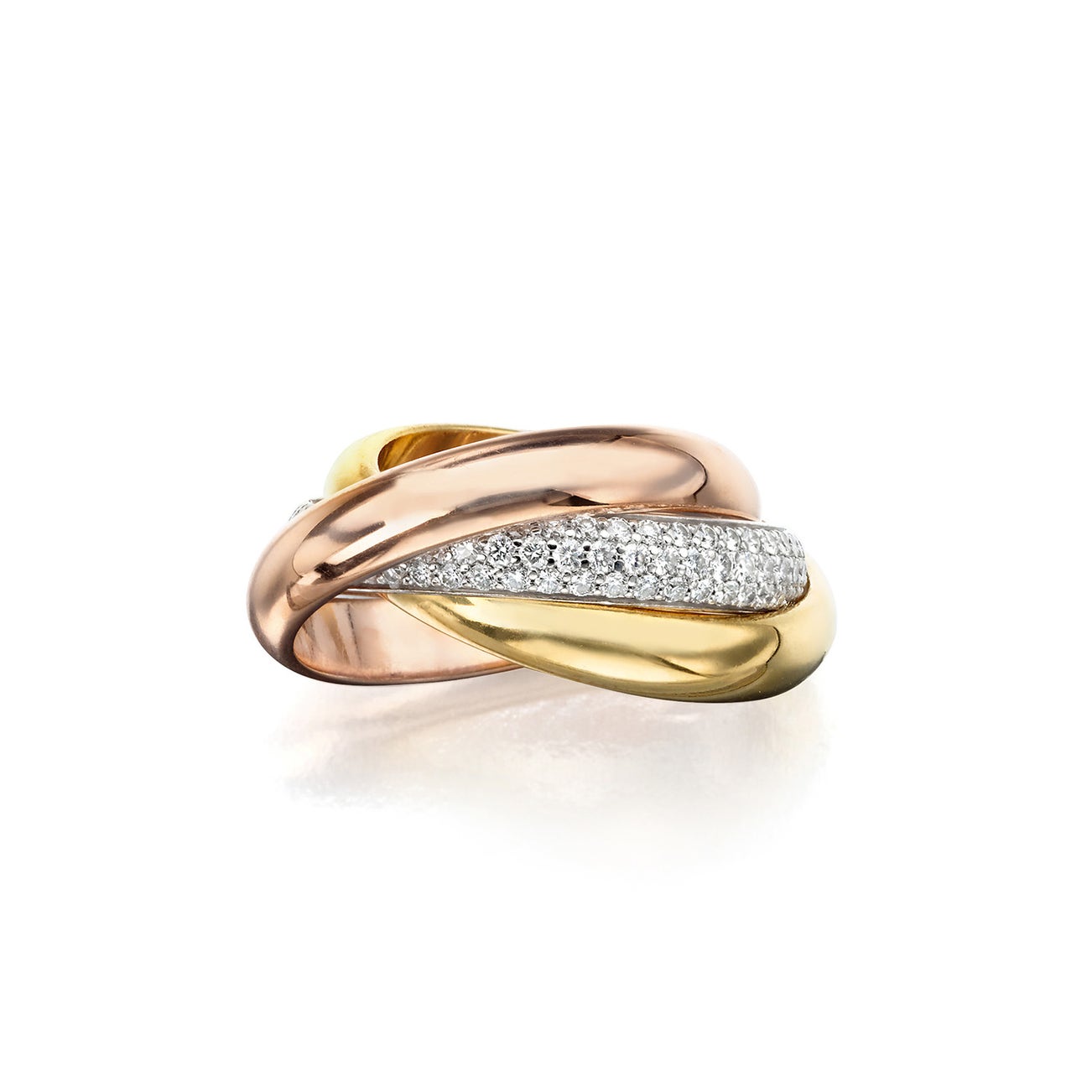 A Diamond and Tri-Colored Gold 'Trinity' Ring
