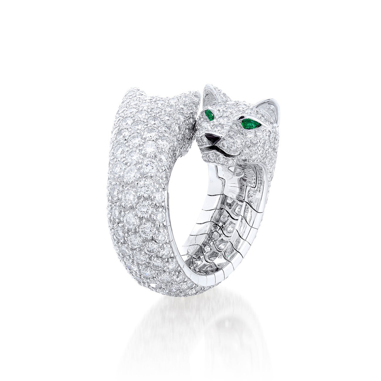 - Enhanced by four pear-shaped emerald eyes and two onyx nose