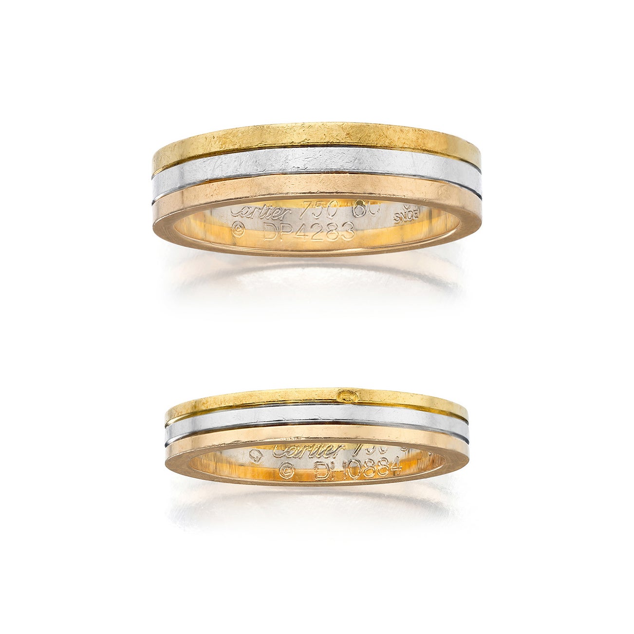18K yellow, white, and rose gold, size 7 and 9.5 respectively