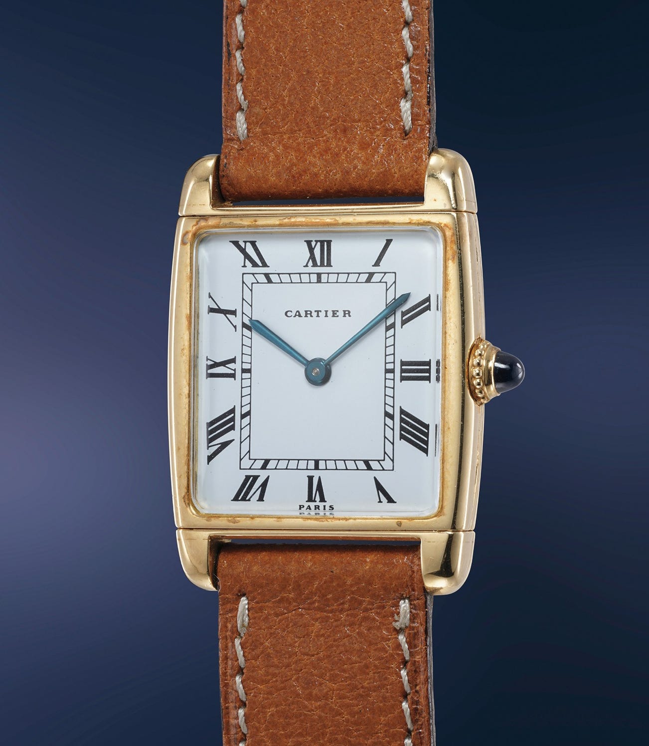 It was not until the 1970’s that Cartier introduced the Tank Reverso, like the present example. Bearing a Paris dial, it was most notably retailed at Cartier Paris. The case is furthermore preserved in spectacular condition with deep and crisp hallmarks. The case and clasp are stamped EJ for Edmond Jaeger, along with French gold marks.