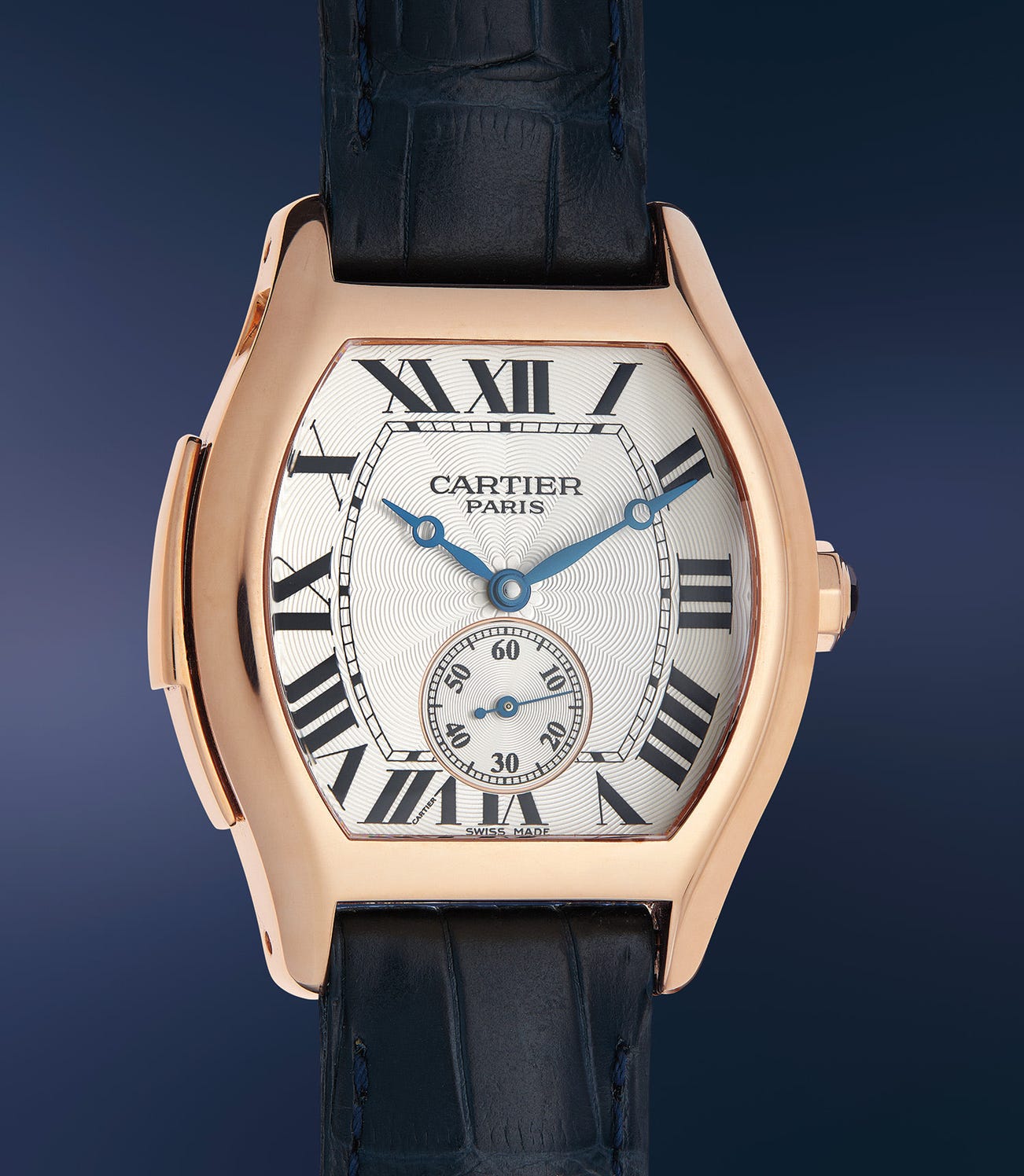 The present limited edition pink gold tonneau-shaped minute repeating wristwatch is from Cartier’s Privée Collection Paris (CPCP), launched in 1998. The watch is number 5 of a limited edition of 25 examples. It is well-preserved in excellent condition, and comes complete with its original certificate and box - sure to please the most demanding collector. The caliber was created by the renowned Renaud & Papi, who are known for some of the most groundbreaking watches of the 1990s and early 2000s, including Audemars Piguet’s Grande Sonnerie. The minute repeater sounds superb, with an attractive pitch and clear tone.