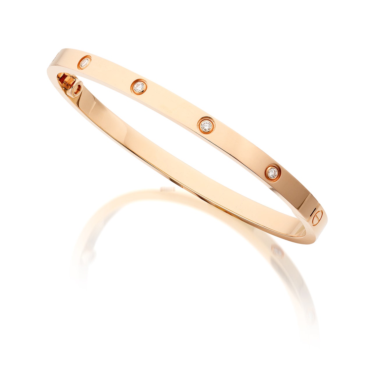 Cartier did not only touch on functionality. Inspired by a commissioned painting by George Barbier featuring a black panther at the feet of an elegantly bejeweled woman, Cartier began incorporating wild animals in his designs—most notably, Cartier Panthère rings, bangle bracelets and watches. Yet it wasn't until the late 1960s that the house of Cartier debuted their iconic yellow and rose gold LOVE collection, which includes the famous bracelet that only a special screwdriver can open.