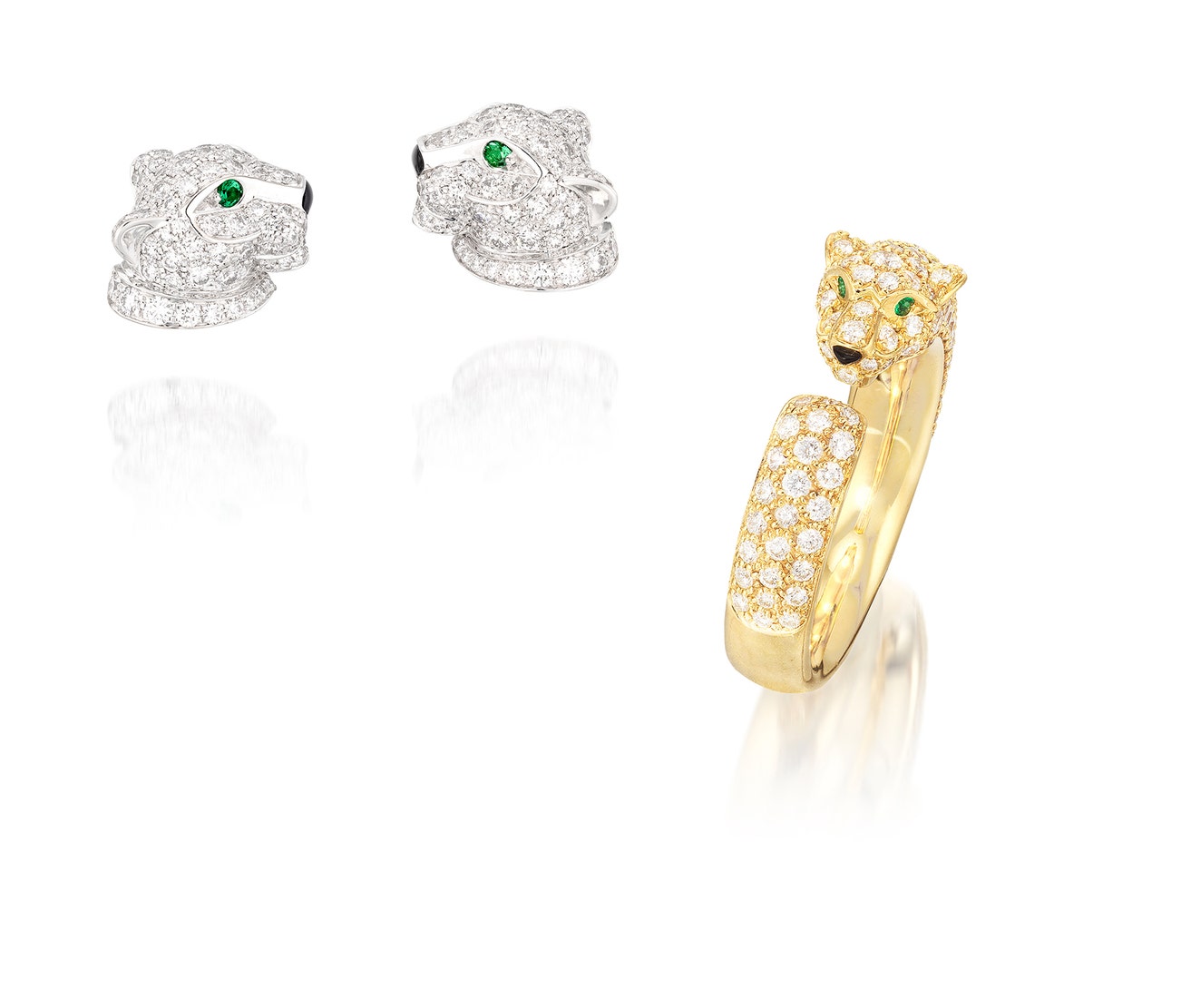 Diamond, Onyx and Emerald Ring and Pair of Ear Studs, ‘Panthère’