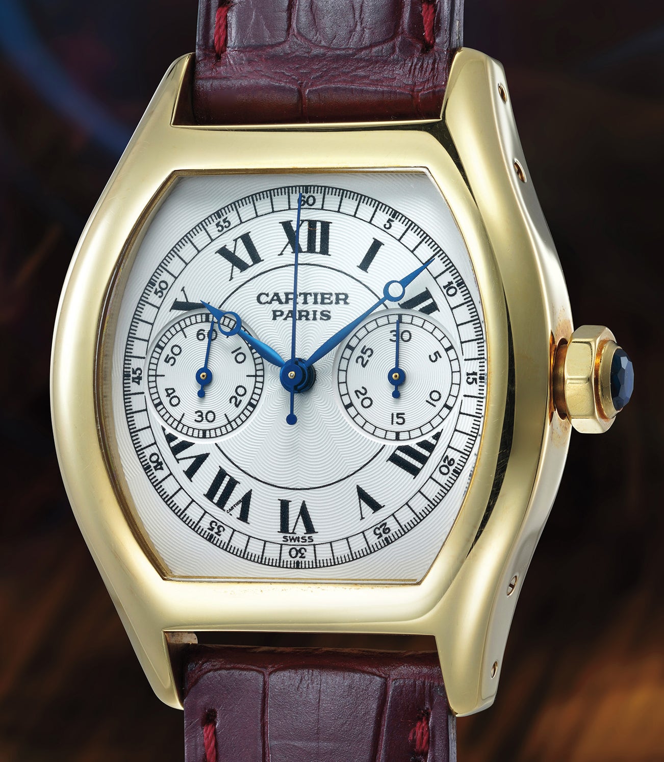 The first monopoussoir, or monopusher, chronograph was released by Cartier in 1928 and the modern edition remains close to the original, but with a larger, more contemporary case featuring the manual caliber 045MC, interestingly co-developed by F. P. Journe, Denis Flageollet and Vianney Halter. The case has a classic look with the single button chronograph operated through the crown giving the watch a clean, uncluttered appeal.