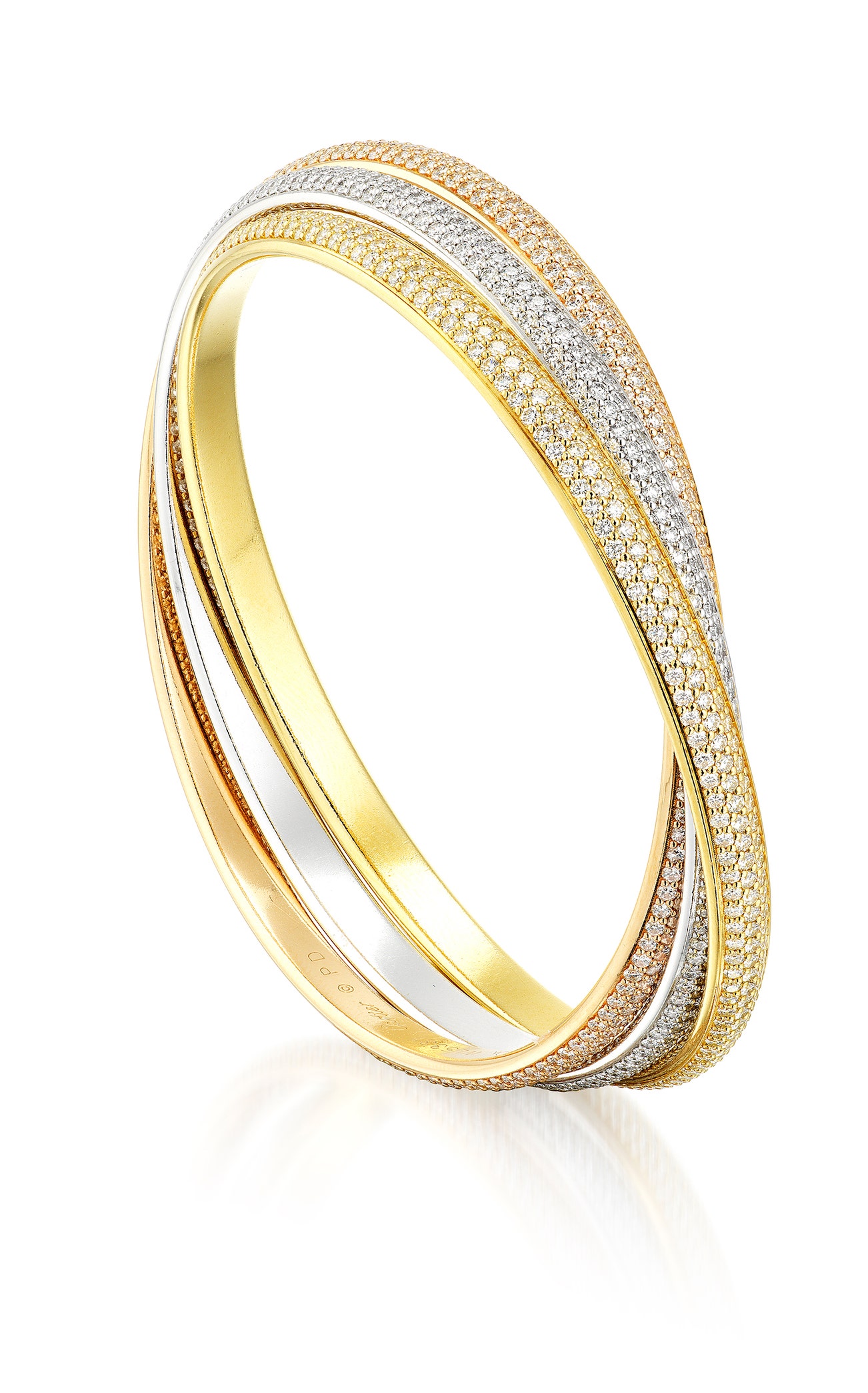 Tri-Coloured Gold and Diamond Bangle, 'Trinity'