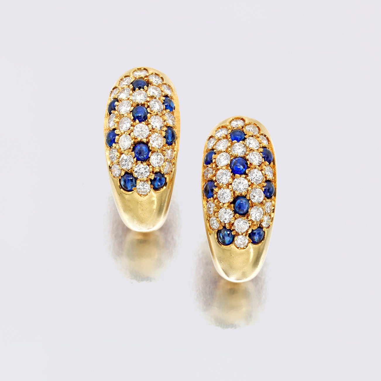 Pair of Diamond and Sapphire Earclips