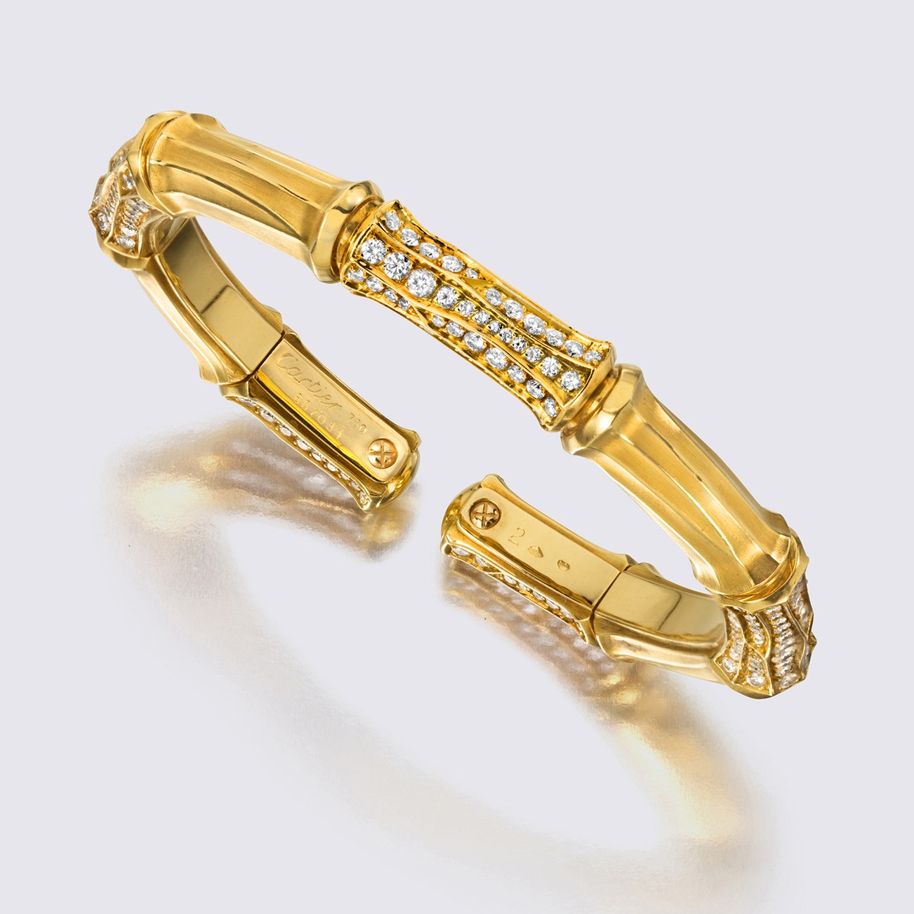 Cartier did not only touch on functionality. Inspired by a commissioned painting by George Barbier featuring a black panther at the feet of an elegantly bejeweled woman, Cartier began incorporating wild animals in his designs—most notably, Cartier Panthère rings, bangle bracelets and watches. Yet it wasn't until the late 1960s that the house of Cartier debuted their iconic yellow and rose gold LOVE collection, which includes the famous bracelet that only a special screwdriver can open.