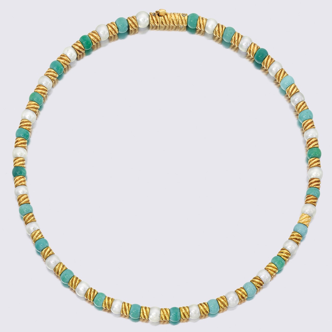 Cultured Pearl and Turquoise Bead Necklace