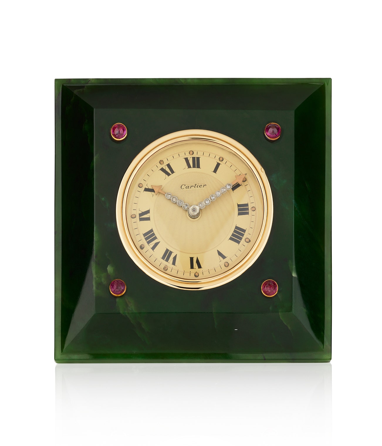 Jade, ruby and diamond desk timepiece, circa 1930