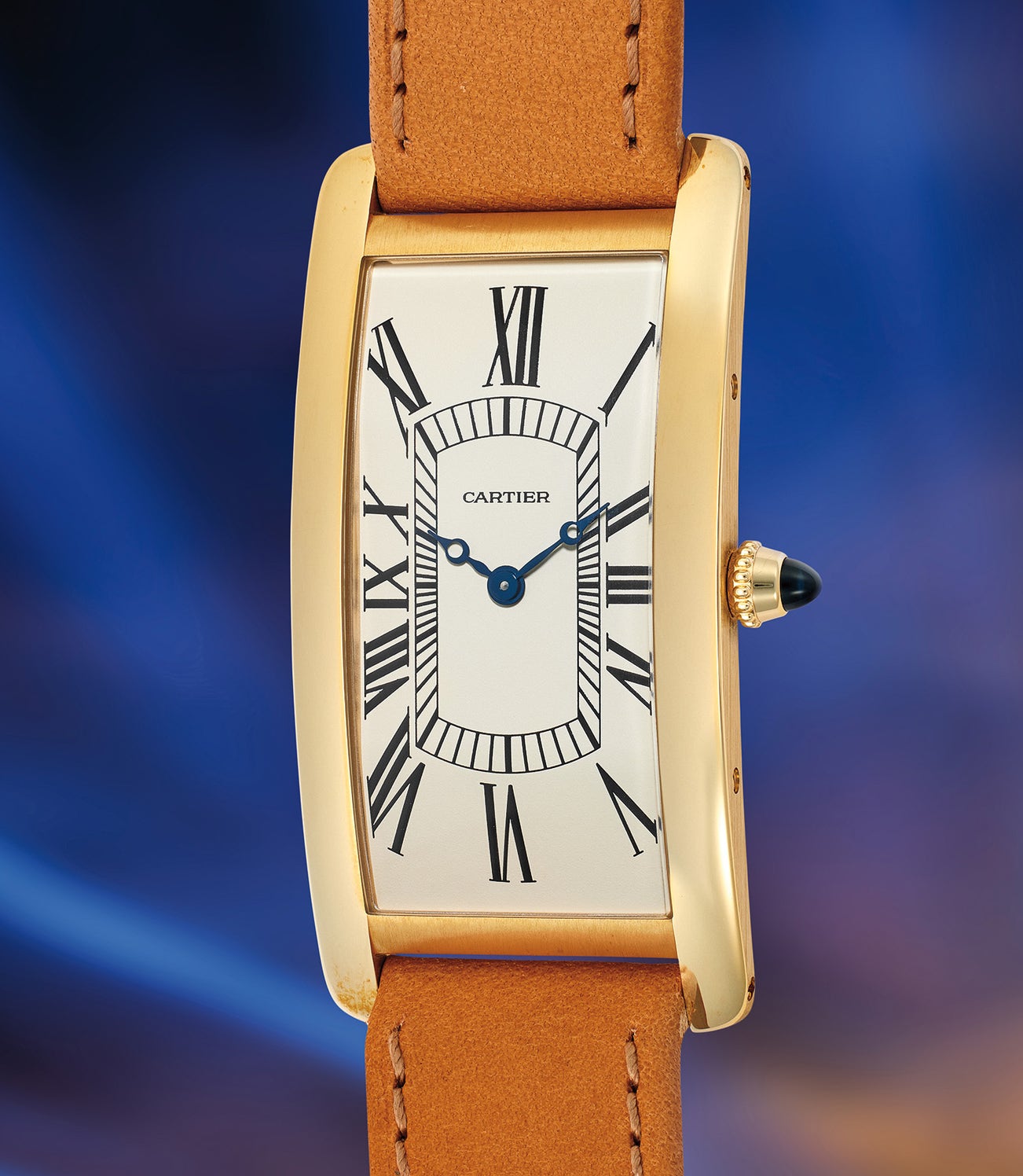 The present limited edition Tank Cintrée was launched in 2021 to celebrate the 100th anniversary of the model, and closely resembles the early 20th century aesthetic of the original. The new edition resembles the production model issued in 2018 with a few slight differences, including Breguet-style hands, elongated Roman numerals and no “Swiss Made” designation found at 6 o’clock.