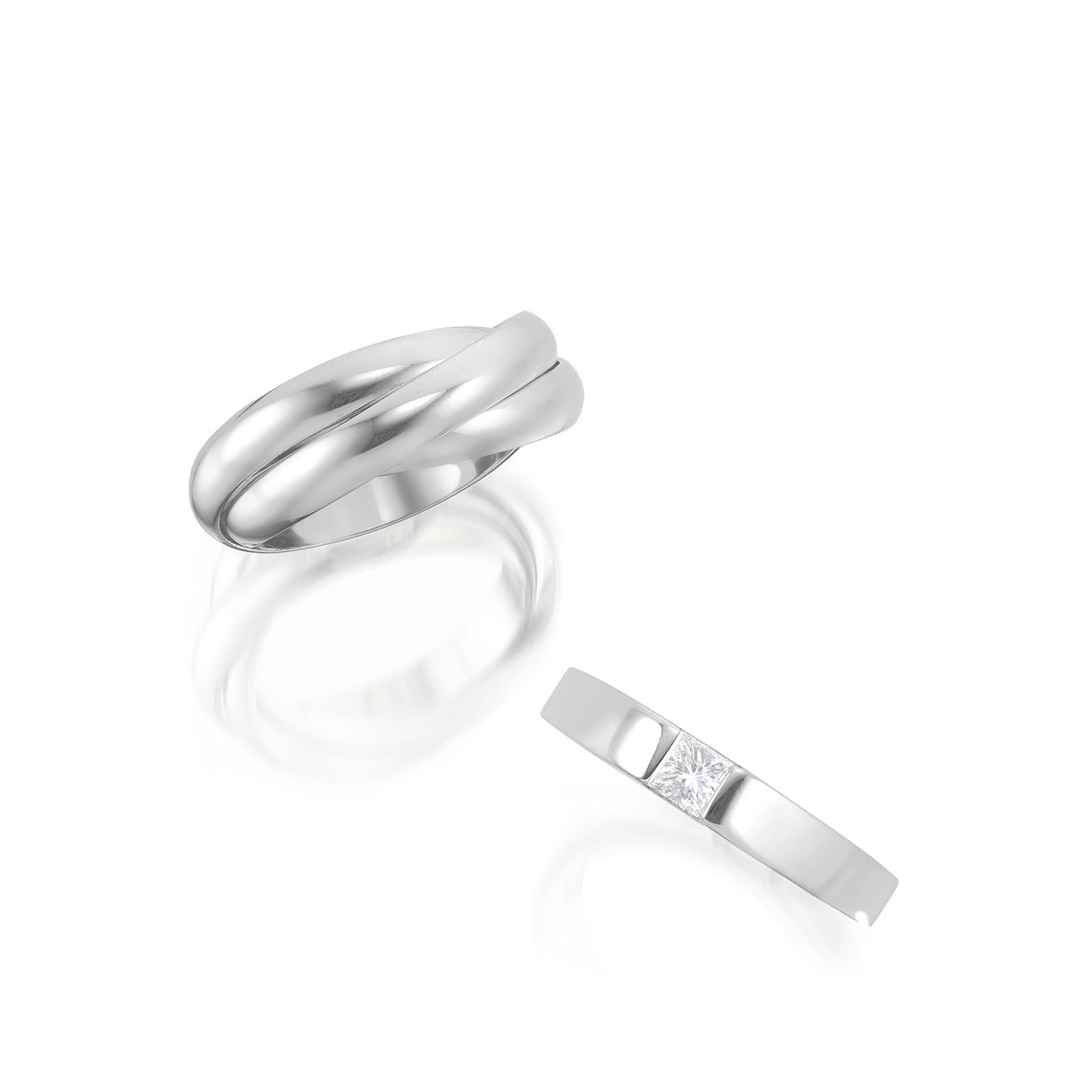 White Gold and Diamond Ring, 'Tank', circa 1997, and White Gold Ring, 'Trinity', circa 1999