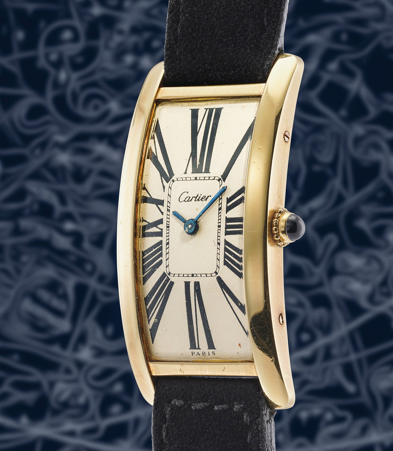 A rare and attractive yellow gold curved wristwatch with Roman numerals