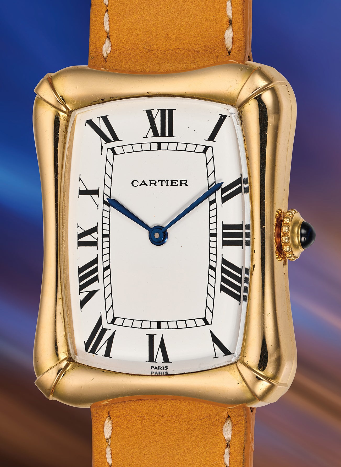 Preserved in beautifully crisp condition with deeply defined gold fluting and a pristine dial, this Jumbo Coussin “Bamboo” offers both rarity and sculptural beauty. Cartier’s shaped watches—especially those from the 1960s and 70s—have gained a cult following among collectors for their unconventional charm, limited production, and uncompromising design. Seldom seen in this oversized format, the present watch is not merely a relic of Cartier’s past, but a wearable piece of design history—bold, whimsical, and enduringly stylish.