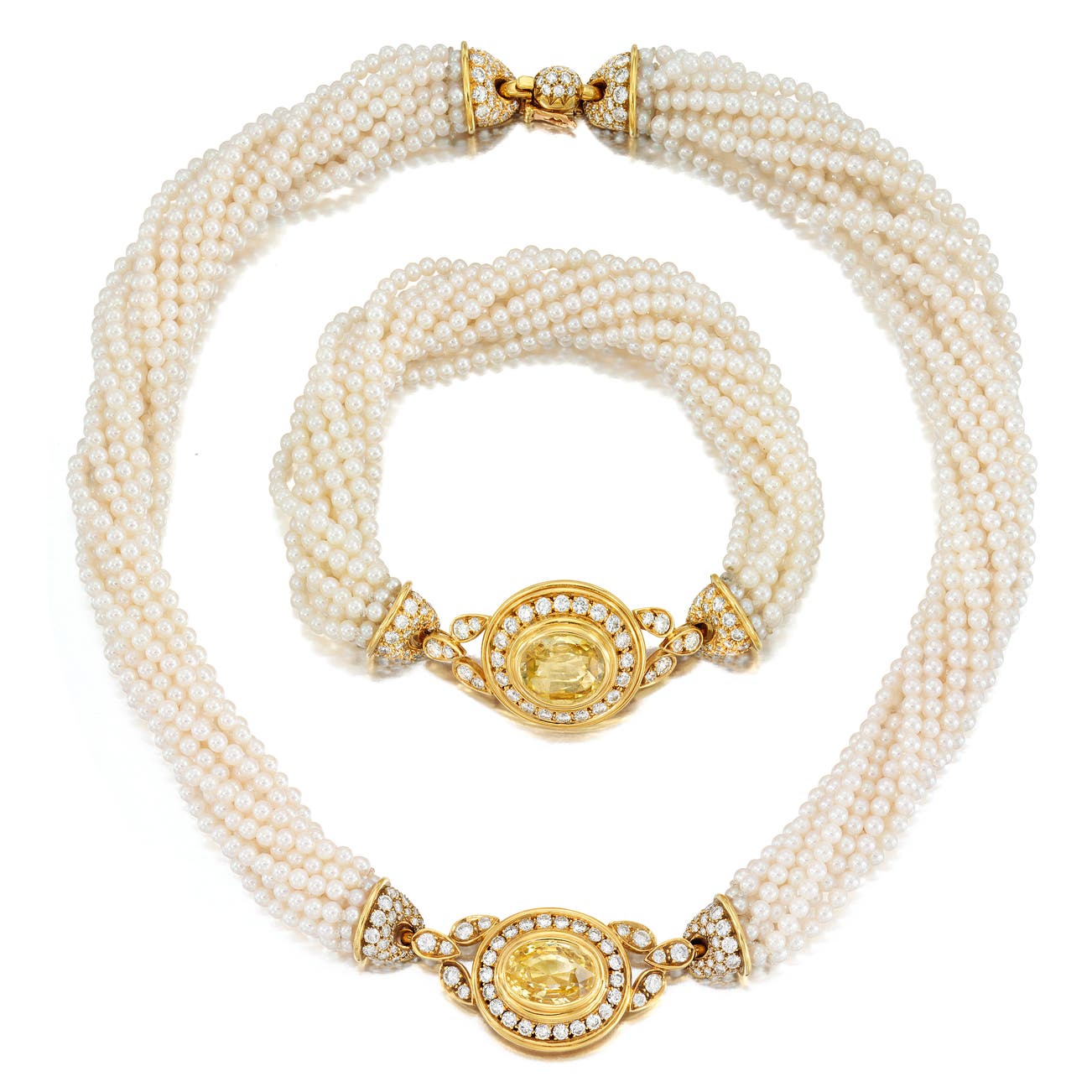 Yellow Sapphire, Seed Pearl and Diamond Demi-Parure