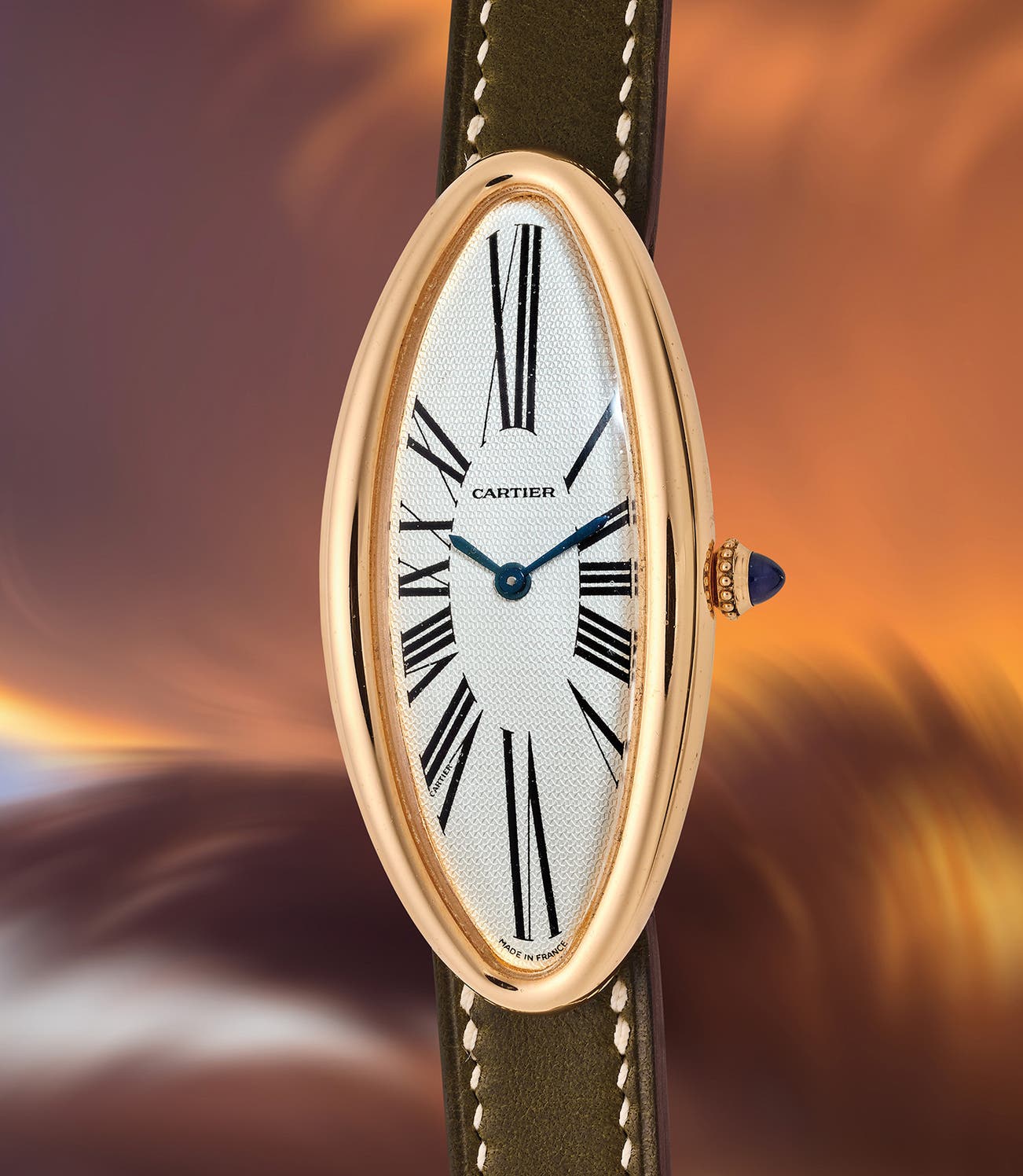Presented here in excellent condition and accompanied by its full set, the watch represents an enticing opportunity for collectors seeking not only a quintessential example of Cartier’s design daring, but also a timepiece of enduring elegance and rarity.