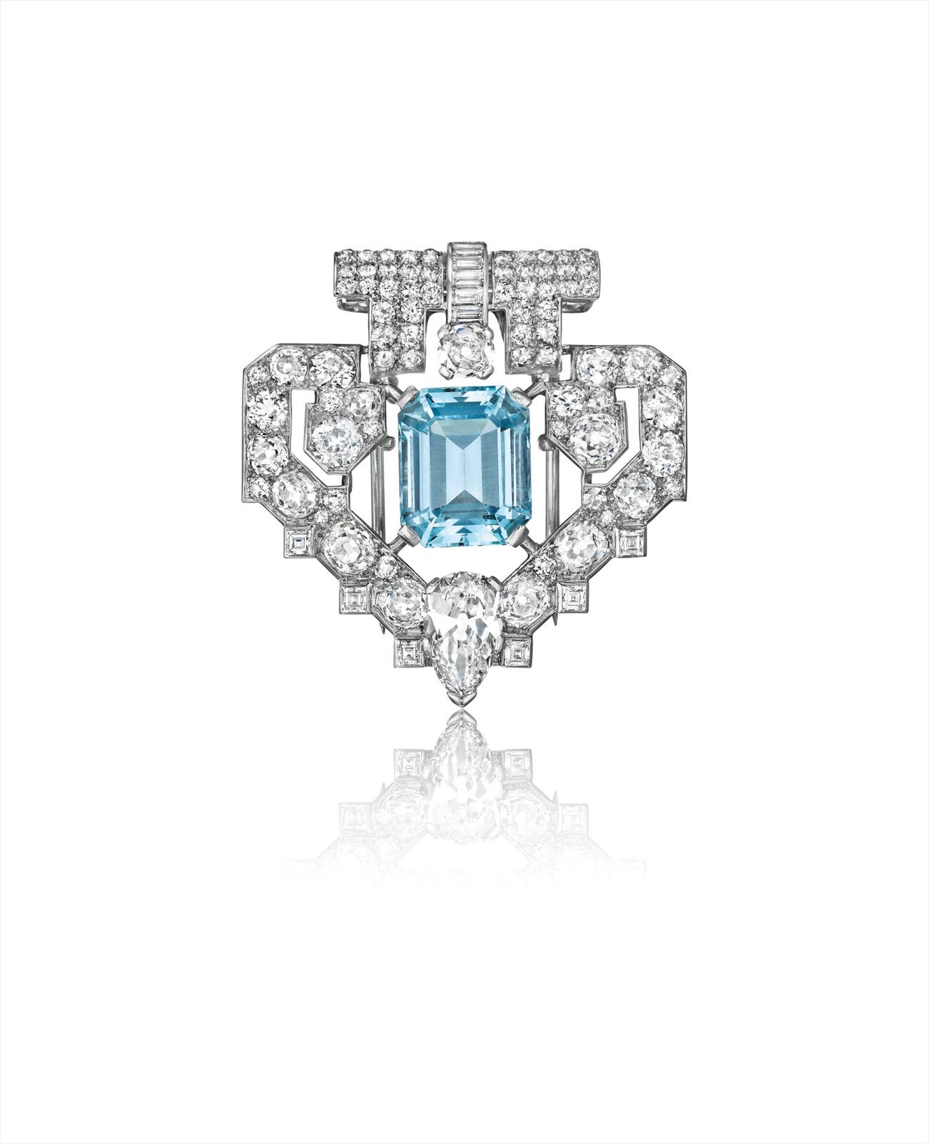 An Important Art Deco Diamond and Aquamarine Brooch