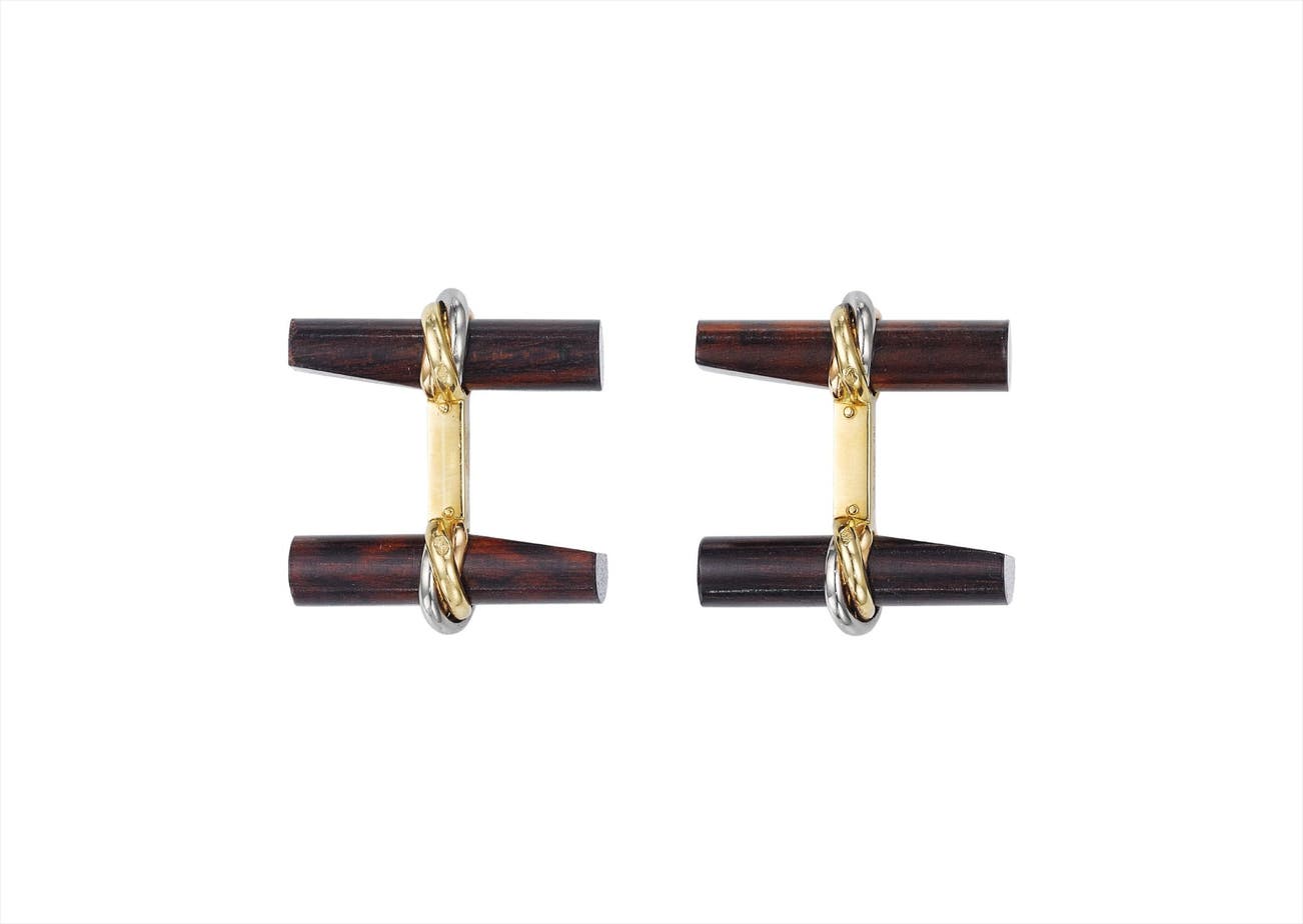 A Pair of Gold and Wood Cufflinks