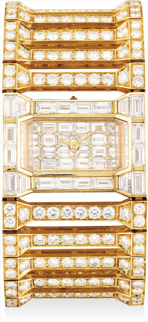 A very rare, large, heavy and possibly unique yellow gold and diamond-set bracelet watch