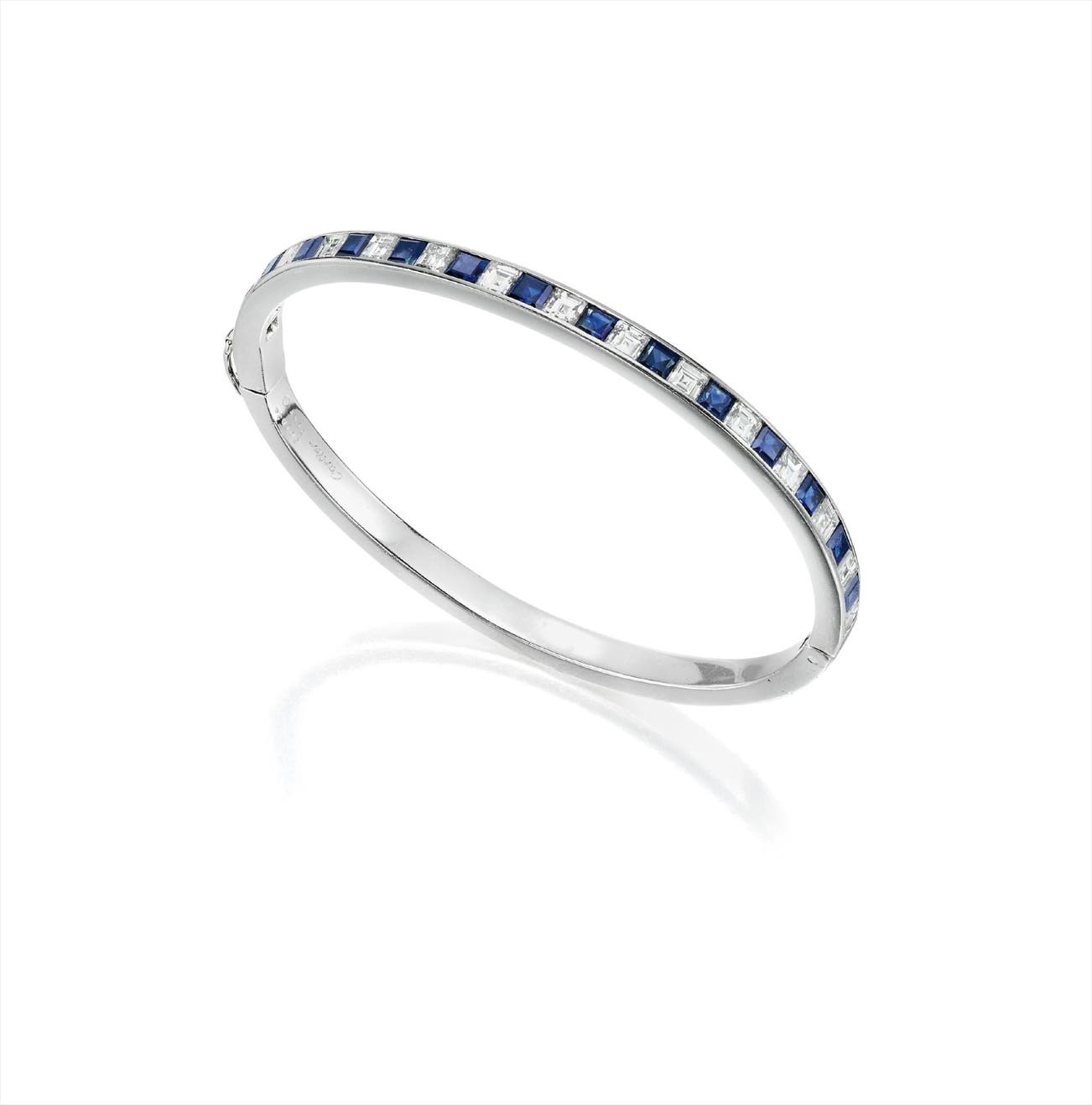 A Sapphire, Diamond, and Platinum Bangle Bracelet