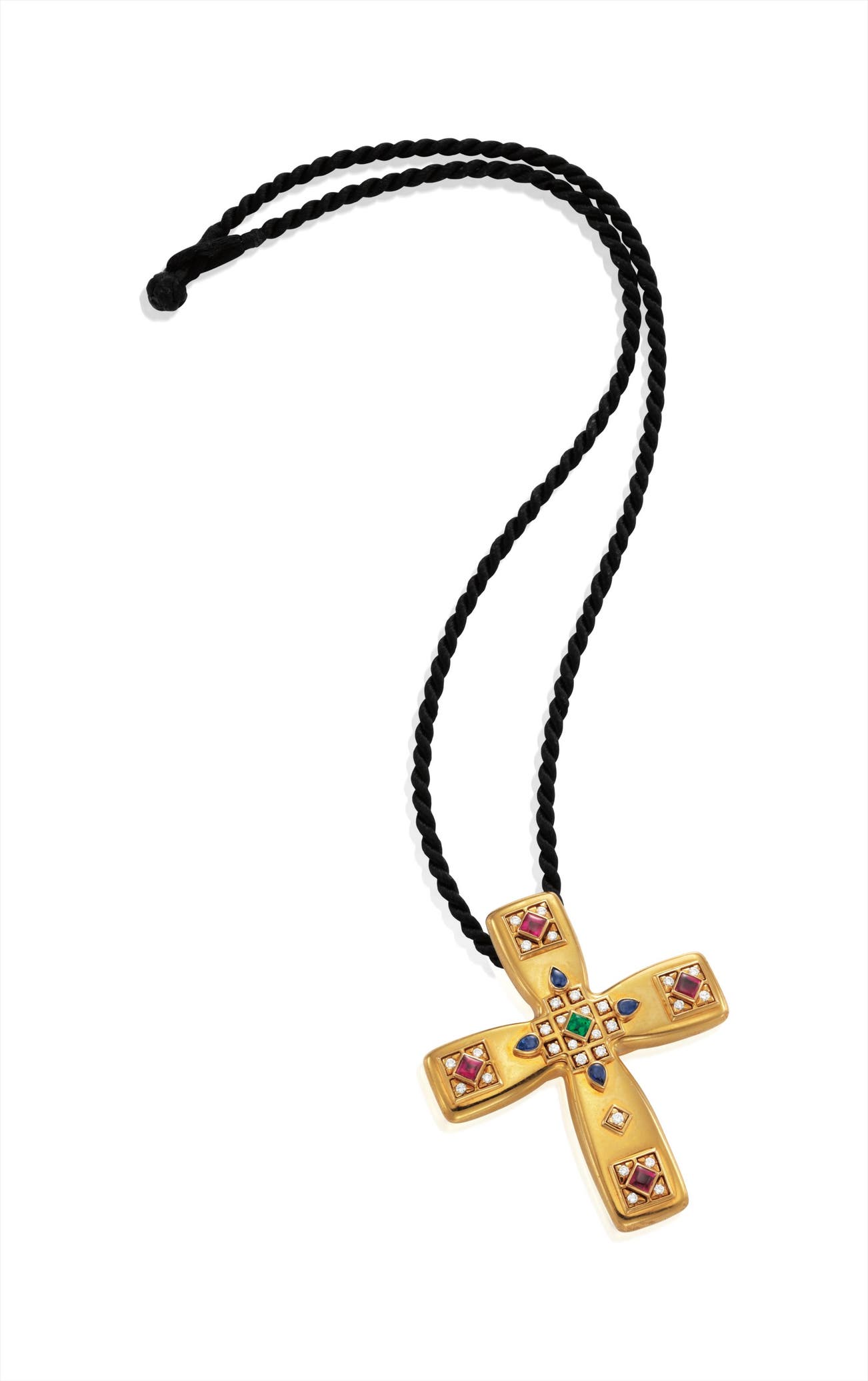 A Gold, Diamond, and Gem-Set Cross Pendant/Brooch