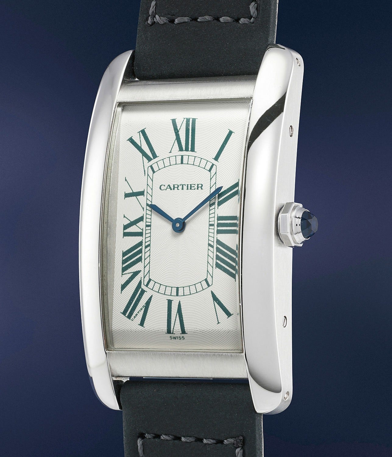 Presented in excellent condition, this Tank Américaine is cased in platinum and displays dark green numerals. Incredibly eye catching, elegant and striking, it was made for the Italian market in 30 examples only. To date, only a handful of examples have come back on the auction market, underscoring its rarity. It is furthermore accompanied by its original certificate confirming the present watch is part of a limited edition series and presentation box.