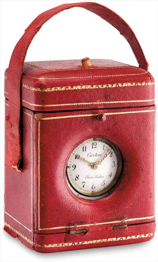 The present miniature desk clock, still retaining its original Cartier fitted travel case, is in wonderfully original condition and is a rare five minute repeating variant. The dial is signed Cartier Paris and London.