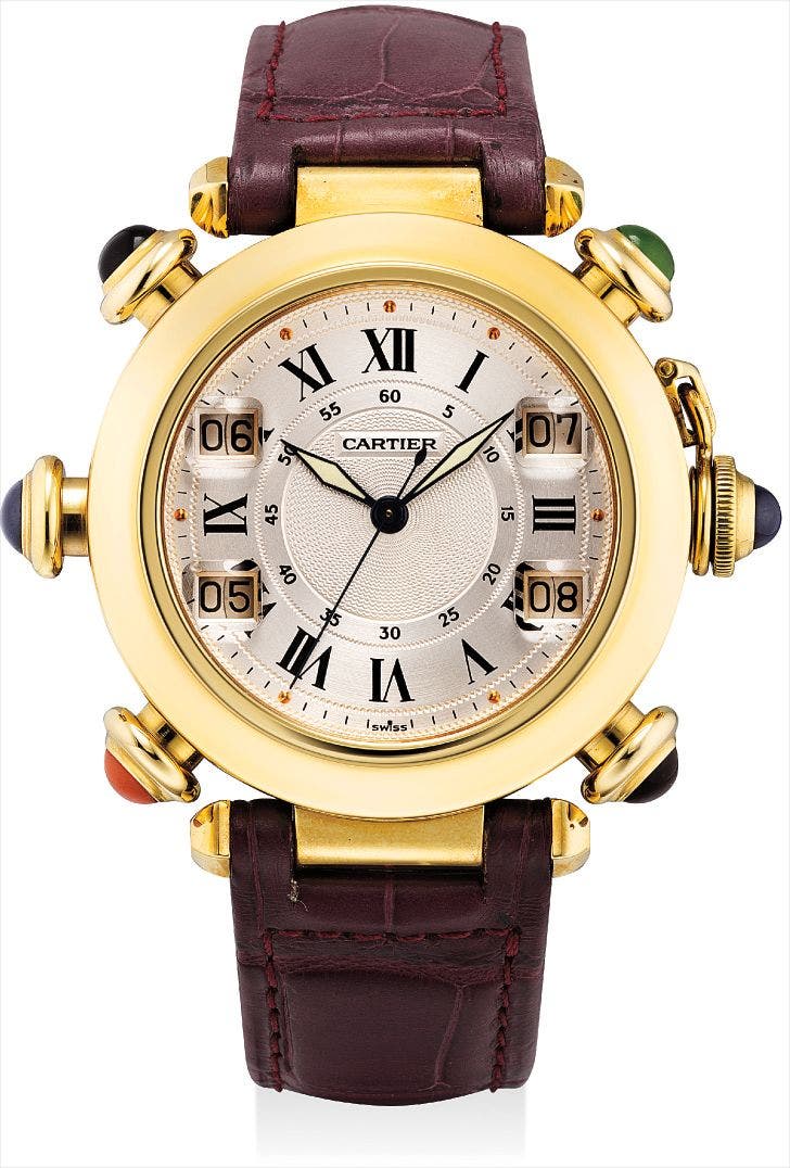A fine and rare yellow gold and multi gem-set wristwatch with sweep centre seconds and golf stroke counters