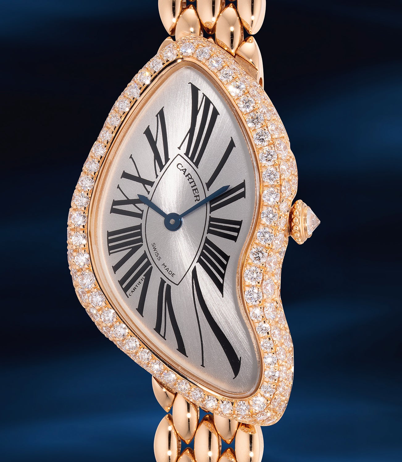 Produced in a limited edition of 267 pieces in 2014, the present Crash ref. 3618 is the last piece to be made and it is further elevated by a sumptuous pink gold case and pave diamond bezel. Complemented by a full pink gold bracelet, a configuration rarely seen with the Crash, this example takes the iconic design to dazzling new heights.