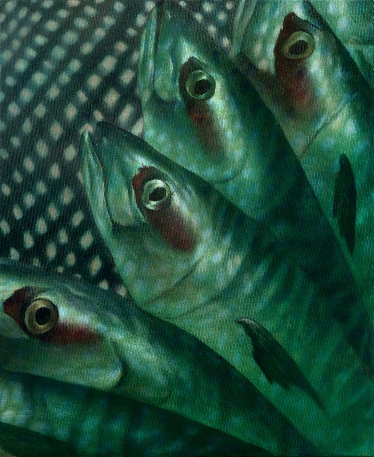 Drawing inspiration from his everyday life, Casey Tan reflects on fish, a staple in Asian cuisine, with Mackerels in A Basket. Once abundant in our waters, the local fish population has declined from overfishing over the years. In this piece, Tan invites viewers to reflect on whether these species and their habitats have been taken for granted despite the vital role they play in regional cuisine.