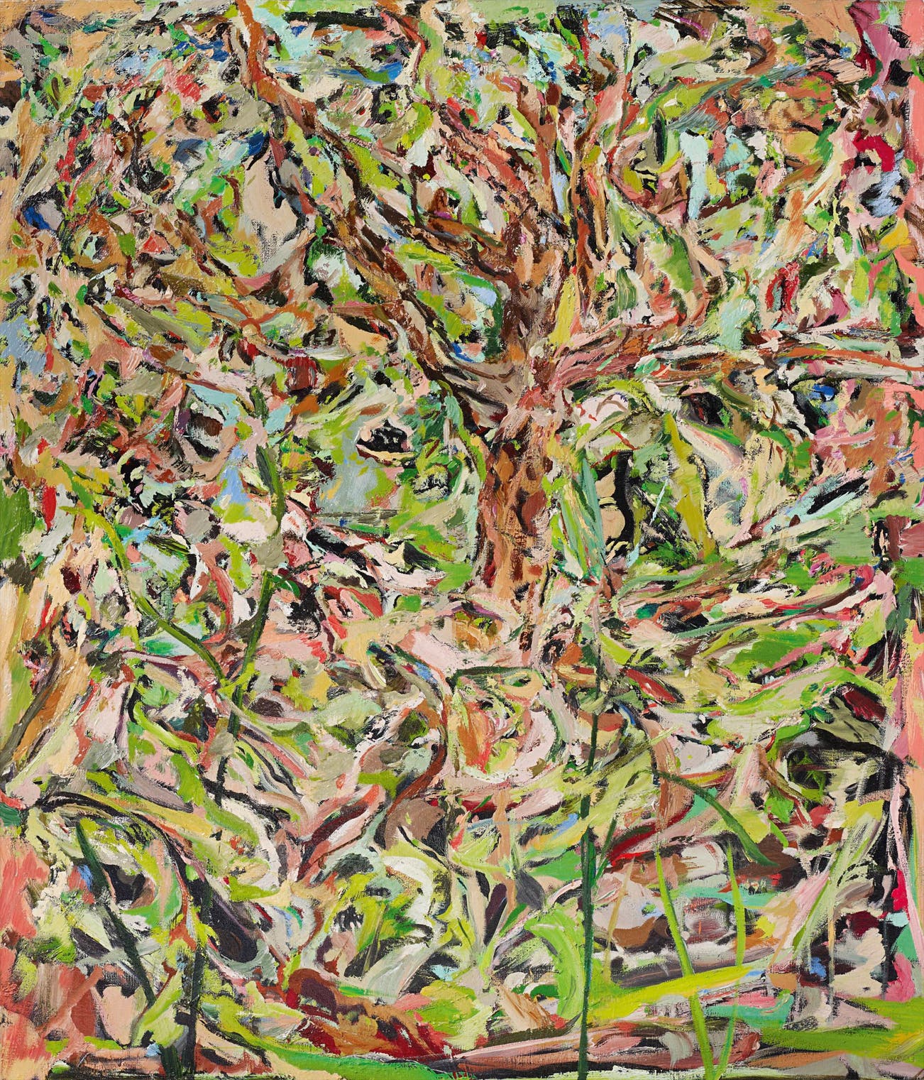 Brown’s paintings are characterized by heavily loaded brushstrokes and overlapping impasto which often reveal the hint of a distinguishable image. In Lured, the outline of a barely sketched tree, whose branches spread through the upper part of the canvas, can be discerned. If the black rounded shapes closer to the tree may be interpreted as apples, this painting suddenly acquires a new meaning and becomes reminiscent of Gustav Klimt’s The Apple Tree – indeed, it is not uncommon for Brownto draw inspiration from the masters of the past such as Hieronymus Bosch and Titian. What at frst seemed to be a gestural work in line with Abstract Expressionism therefore reveals itself to be a more complex exploration of the boundaries between abstraction and fguration. "I am very reluctant to let go of the fgure and to certain erotic or violent content. I always want this confict in the painting" (the artist in Cecily Brown, ed. Ashton Dore, Gagosian Gallery & Rizzoli International Publications, New York, 2008, p. 27).