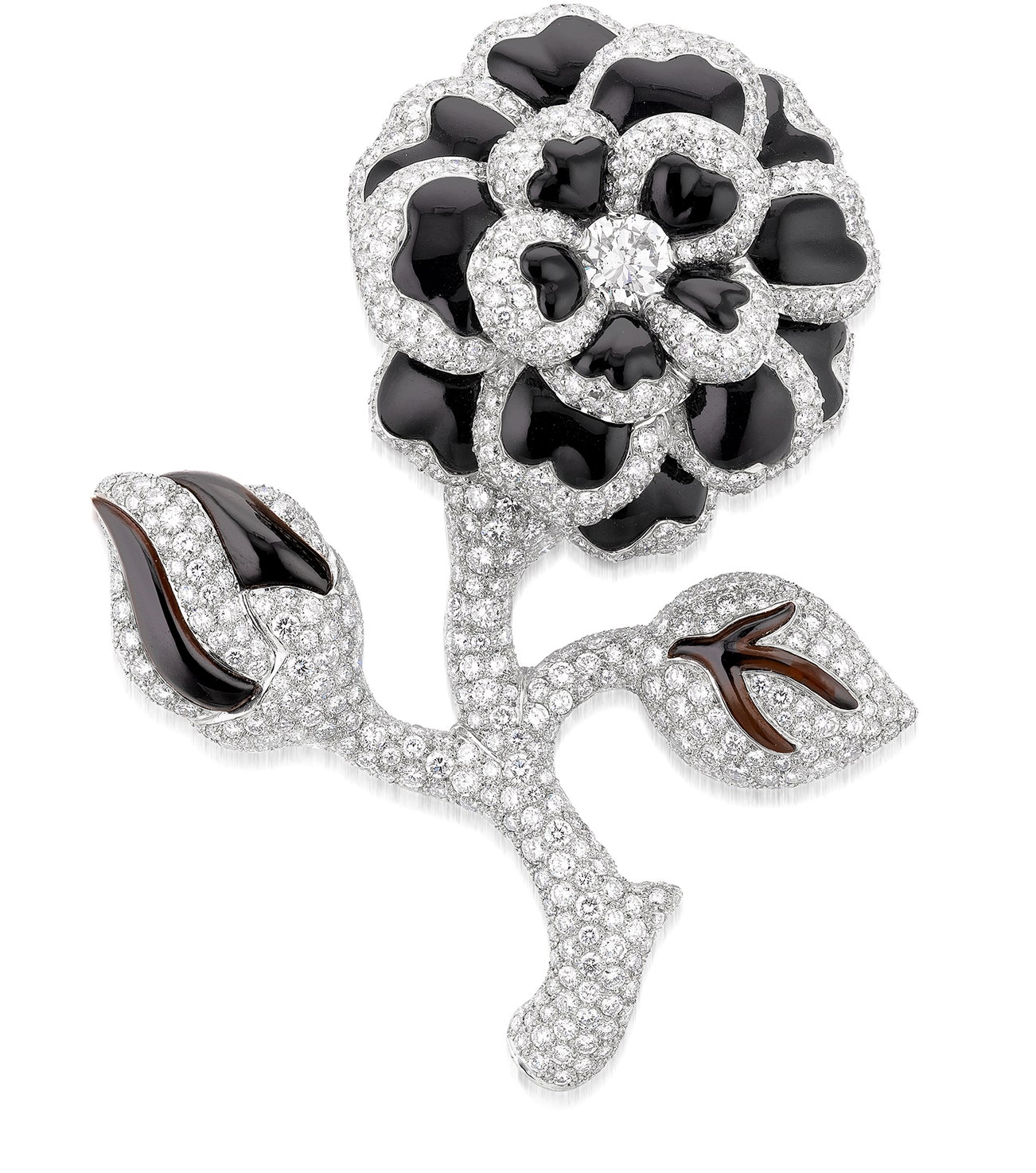 Diamond and Onyx Brooch, 'Camellia'