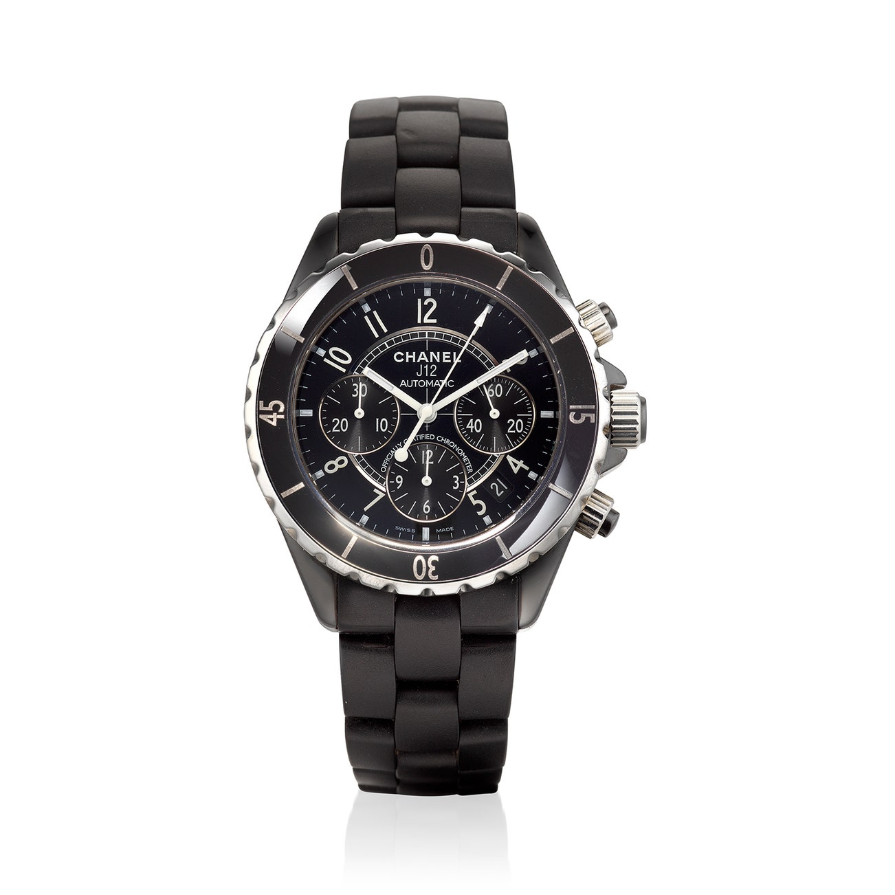 Of automatic movement, black dial, Roman numerals, with date aperture between 4 and 5 o'clock, white hands, in a round case with a rotating bezel, with black ceramic bracelet and stainless steel double folding buckle, mounted in black ceramic and steel, case, dial and deployant buckle signed Chanel, numbered, case diameter approximately 41 mm, inner circumference approximately 135 mm, case stamped Chanel.