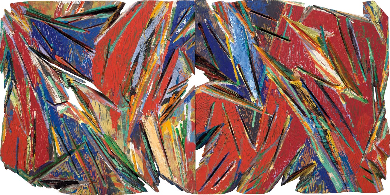signed "ARNOLDI" on the reverse of the left panel and dated "1986" on the reverse of the right panel