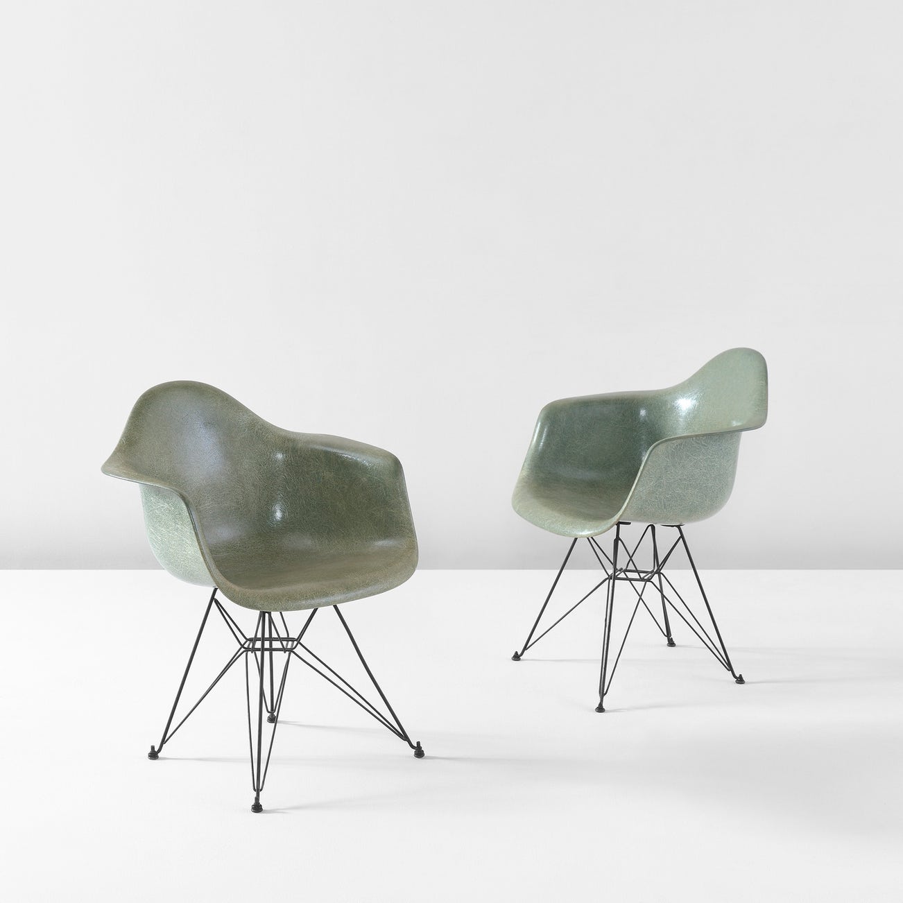 Manufactured by Herman Miller Furniture Company, Zeeland, Michigan. Underside of each armchair with manufacturer's paper label printed herman miller/furniture company/zeeland/michigan and DESIGNED BY/CHARLES EAMES.